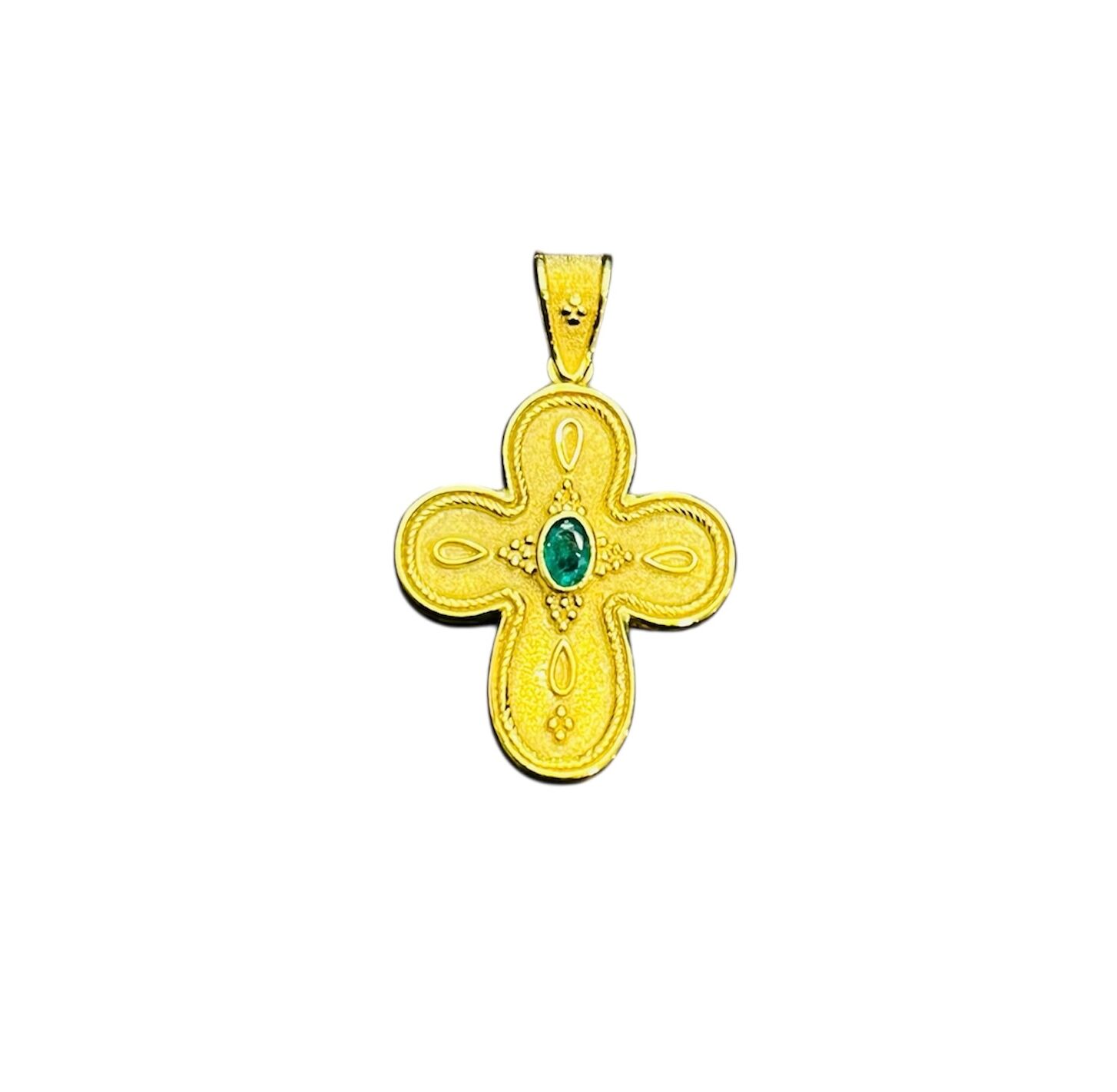 K14 Χρυσός Βυζαντινός Σταυρός με Σμαράγδι