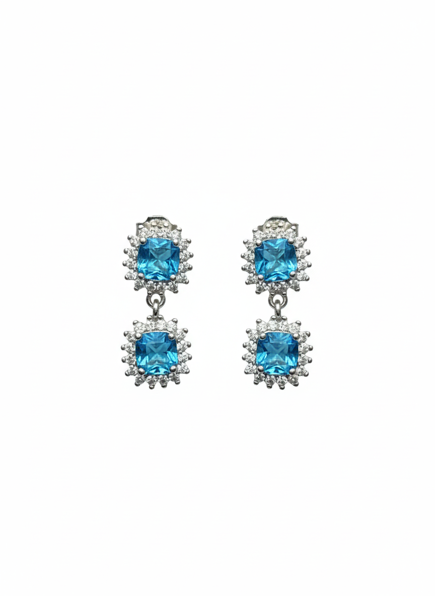 Ασημένια Σκουλαρίκια ροζέτα με Aqua Marine και Ζιργκόν