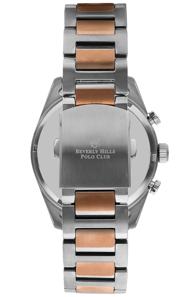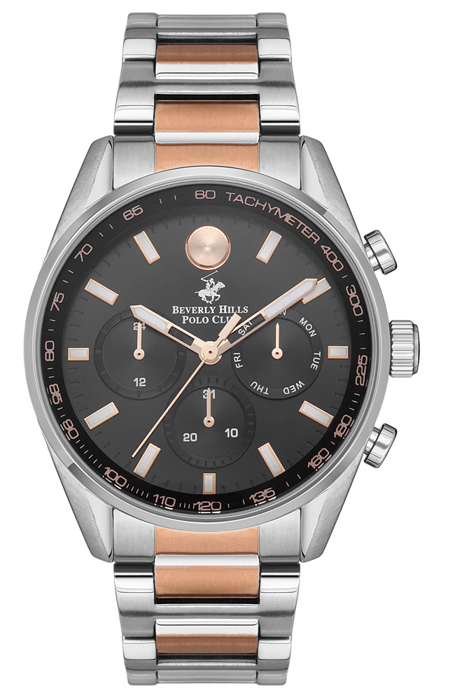 Αντρικό ρολόι από την εταιρία Beverly Hills Polo Club. Το στρογγυλό καντράν, με το μεταλλικό μπρασελέ σε ασημί χρώμα, ιδανικό για καθημερινές άλλα και πιο επίσημες εμφανίσεις. Διαθέτει μηχανισμό μπαταρίας, ο οποίος βασίζεται στην ηλεκτρική ενέργεια που παράγει η μπαταρία, με αποτέλεσμα να υπάρχει ακρίβεια και αντοχή.