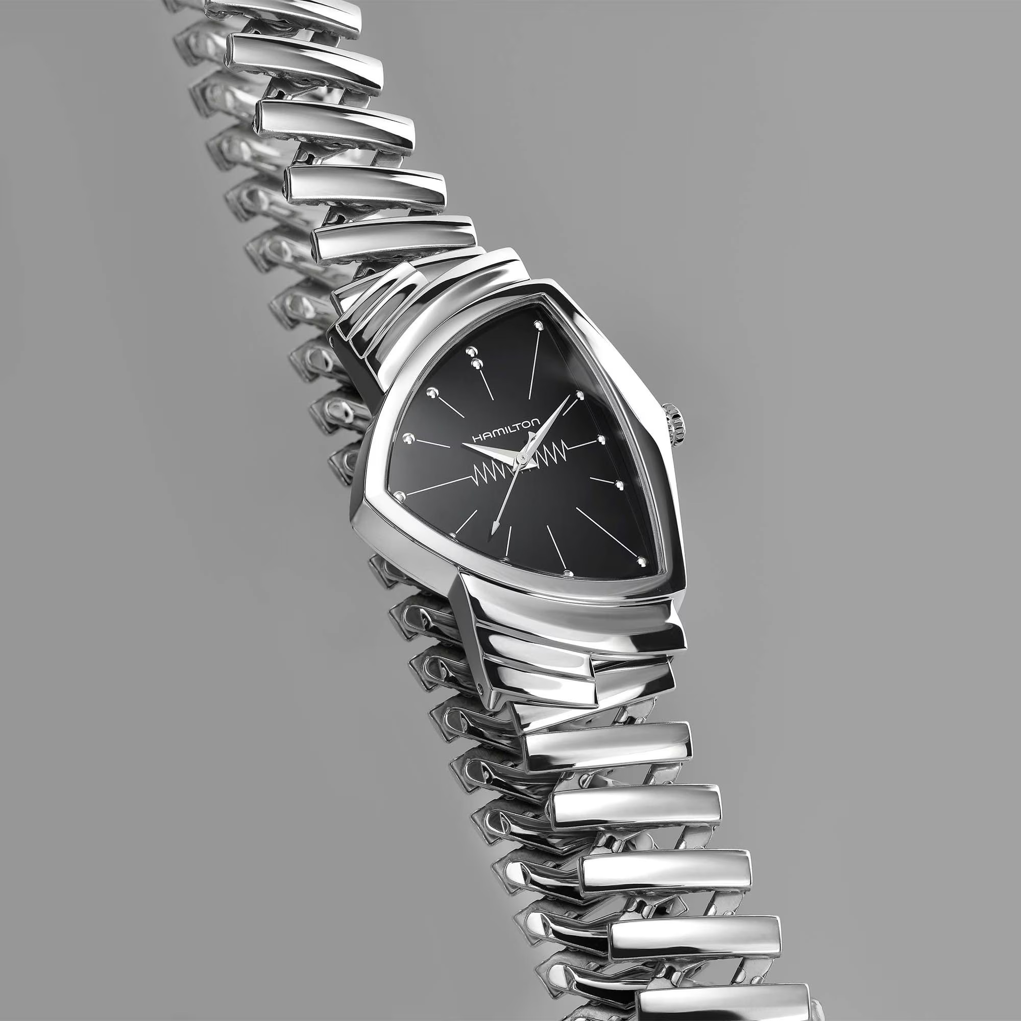 Τα ρολόγια Hamilton Ventura, γνωστά για το φουτουριστικό, ασυνήθιστο σχέδιο της κάσας τους σε σχήμα ασπίδας, τα ρολόγια Ventura είναι εμβληματικά και έχουν εμφανιστεί σε πολλές ταινίες.